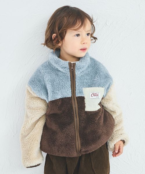 【ましゅまろボア】洗える/軽い/ふんわり ユニセックス 配色ボアフリースブルゾン