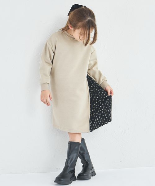 【ぬくふわ】裏起毛 サイドプリーツ ドッキング ワンピース