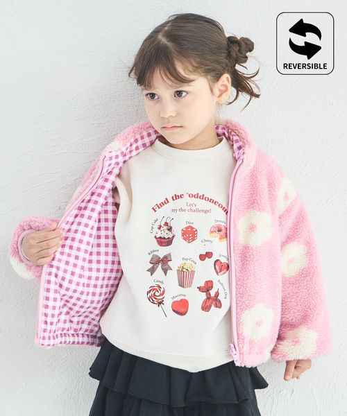 【エアサーマル】ガールズ 総柄 リバーシブル ボアブルゾン