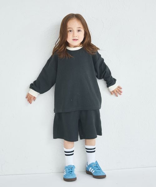 【軽ふわっふる】ユニセックス ウエスト配色 ワッフル ワンマイルセットアップ