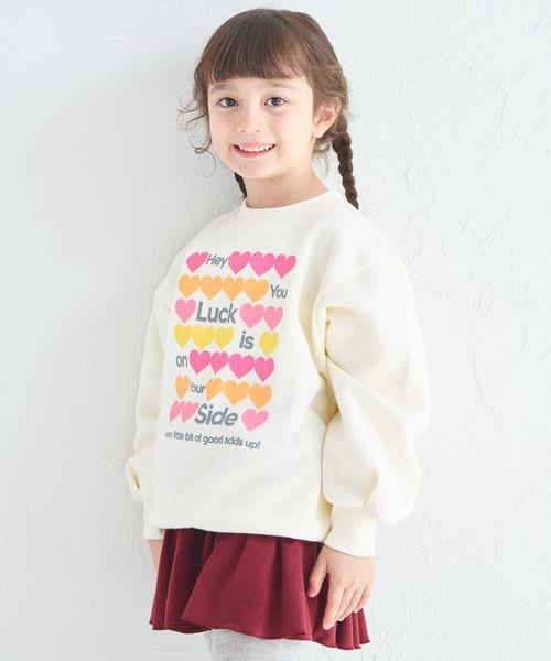 【ぬくふわ】裏起毛 ガールズ カラフルハート プリント ゆるスウェット