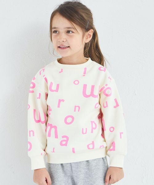 【ぬくふわ】ガールズ 総柄 ロゴプリント 裏起毛 トレーナー
