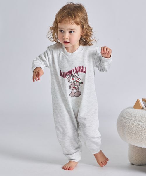 【まいにちスウェット】【リンクコーデ】【ベビー】ユニセックス 裏毛 くまプリントロンパース