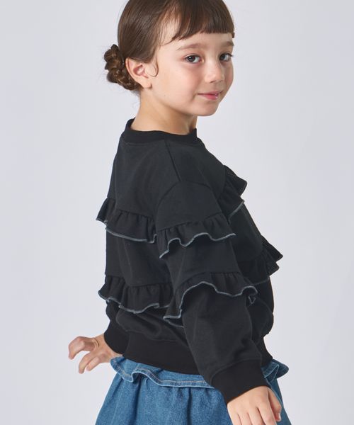 【まいにちスウェット】ガールズ 裏毛 配色メロー フリルスウェット