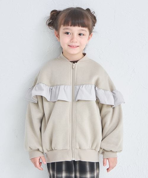 【ぬくふわ】裏起毛 フリル付き ノーカラー ジップ リブブルゾン