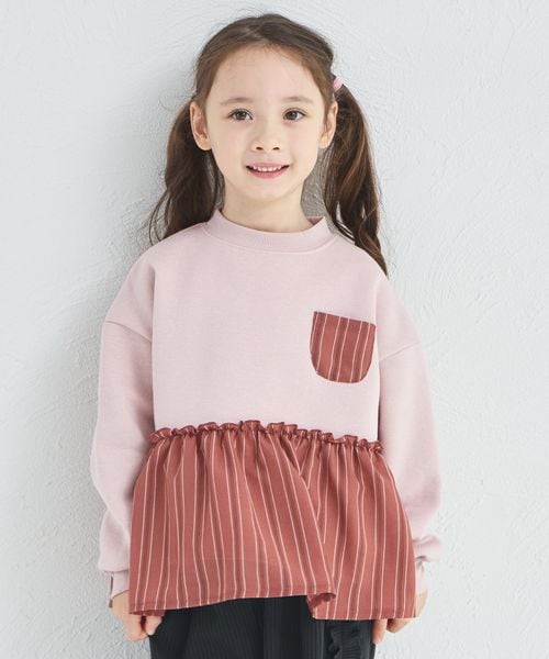 【ぬくふわ】裏起毛 ペプラム 切り替えドッキング トレーナー