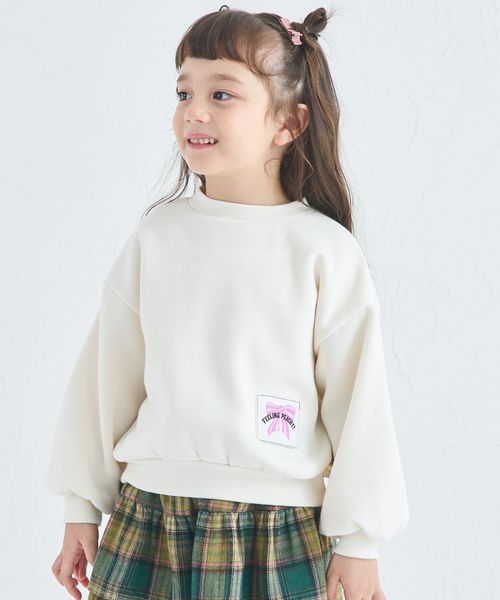 【ぬくふわ】裏起毛 リボン ネームタグ ガールズトレーナー