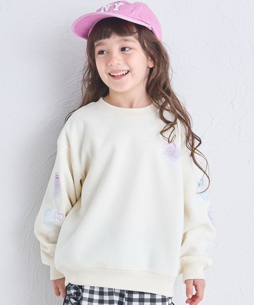 【ぬくふわ】ガールズ 裏起毛 袖プリント トレーナー