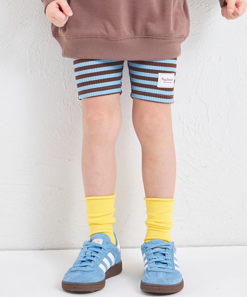 【リブコットン100】ユニセックス タグ付き 配色ボーダーサイクルパンツ