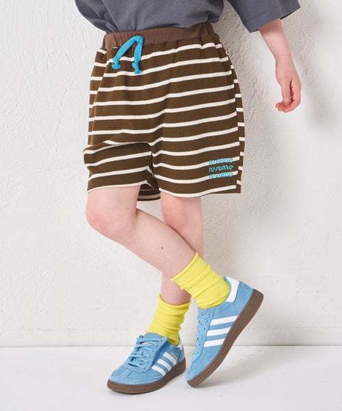 【さらっとワッフル】ユニセックス 配色ロゴ ボーダーハーフパンツ