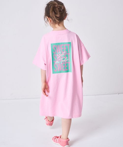 【綿100%】ガールズ バックプリント Tシャツワンピース