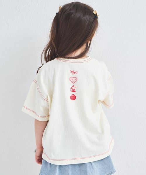 【綿100%】ガールズ 配色ステッチ ロゴプリントTシャツ