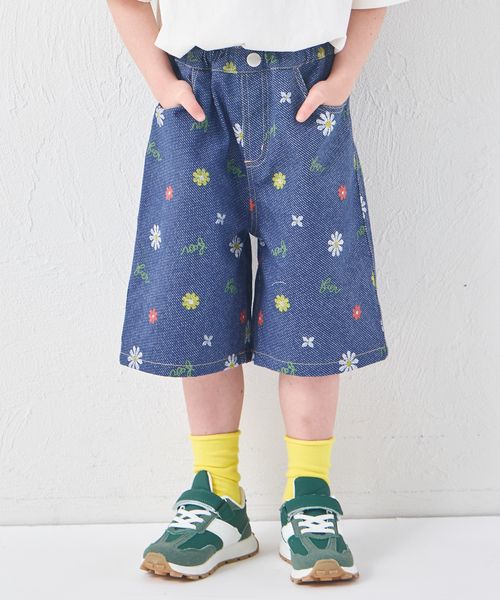 【リンクコーデ】ユニセックス 総柄 デニムハーフパンツ