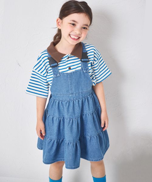 ガールズ ティアードデニムジャンパースカート