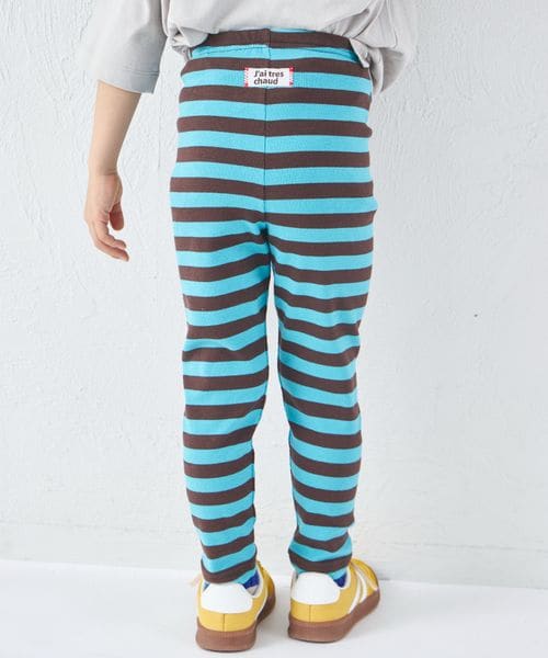ユニセックス ネームタグ付き ボーダーリブレギンス