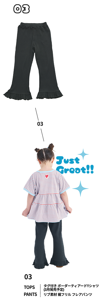 【新色追加】【リブコットン100】ガールズ テレコ 裾フレアパンツ