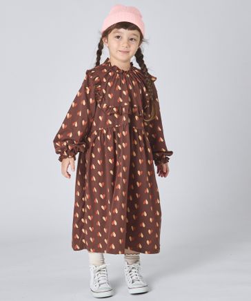 【ぬくふわ】裏起毛 ガールズ バックプリント スウェットワンピース