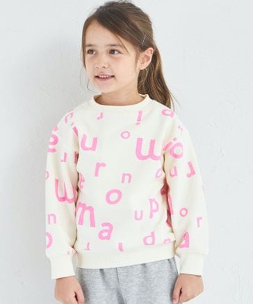 【ぬくふわ】ガールズ 総柄 ロゴプリント 裏起毛 トレーナー