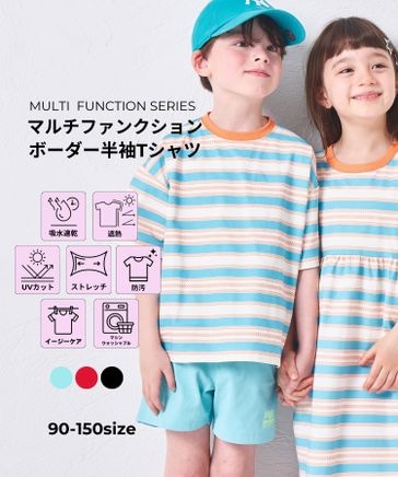 【リンクコーデ】【マルチファンクション】ユニセックス ボーダー半袖Tシャツ