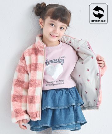 【エアサーマル】ガールズ 総柄 リバーシブル ボアブルゾン