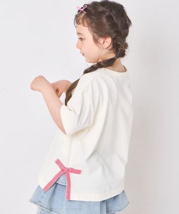 【綿100%】ガールズ リボンスリット 半袖Tシャツ