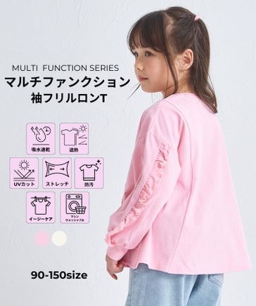 【マルチファンクション】ガールズ 無地 袖フリルロンT