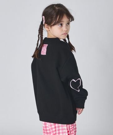 【ぬくふわ】ガールズ 袖ワンポイント ハート タグ 裏起毛 トレーナー