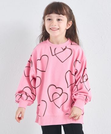 【サラッとスウェット】フラワー ハート 総柄 プリント 裏毛 スウェットトレーナー