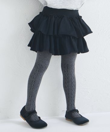 【ぬくふわ】ガールズ 裾フリル 裏起毛 リラックスパンツ