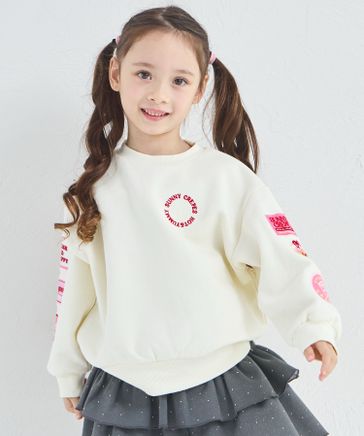 【ぬくふわ】ガールズ 袖ワッペン 裏起毛 トレーナー