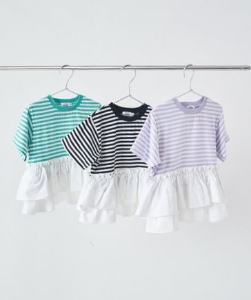 【綿100%】ガールズ ペプラム ドッキング ボーダーTシャツ