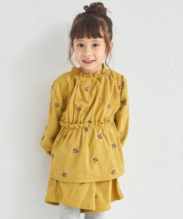 【リンクコーデ】フラワー刺繍 コーデュロイ キュロット セットアップ ¥3,594 税込