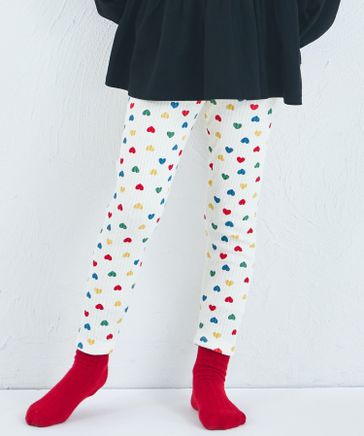【新色追加】【リブコットン100】アソート柄 無地 10分丈 リラックスリブレギンス/キッズ
