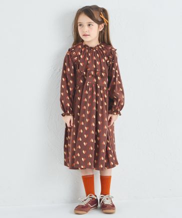 【ぬくふわ】裏起毛 ガールズ バックプリント スウェットワンピース