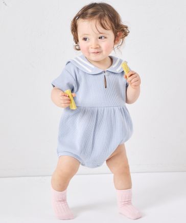 【新色追加】【さらっとワッフル】【ベビー】セーラーカラー ロンパース