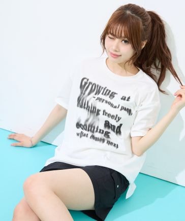 【shrita】スプレーロゴプリントチュニックTシャツ