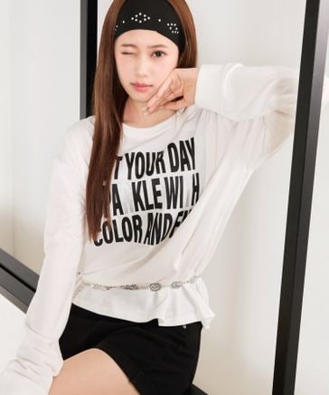 【shrita】スプレーロゴプリントチュニックTシャツ