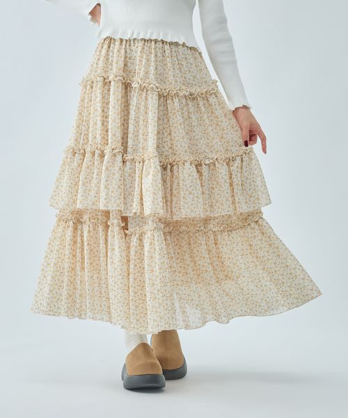 小花柄ティアードスカート