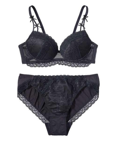 【ノンワイヤー/程よくボリュームアップ】谷間メイクレースノンワイヤーブラセット