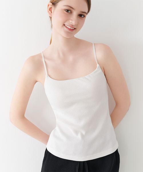 【カップ付きで便利!谷間をカバーするネックライン】リブストリングブラキャミソール