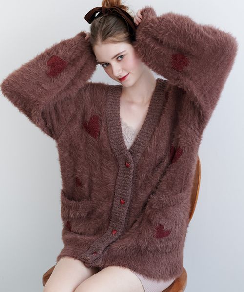 【あたたかな、ふわもこニットカーデ。】ホイップリーハートシャギーカーディガン