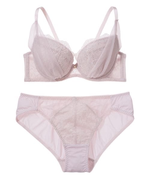 【丸胸メイクするブラジャー&ショーツセット】サイドチュールレースブラジャー&ショーツセットなちゅこれ