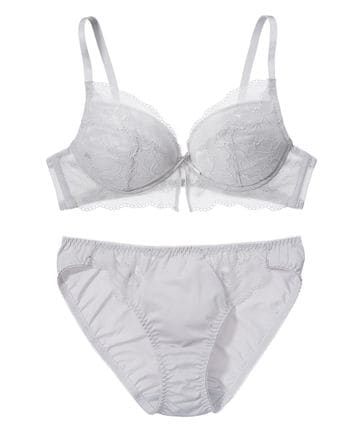 【ノンワイヤーで、ラクな着け心地。】スリットレースノンワイヤーブラジャー&ショーツセットりらこれ