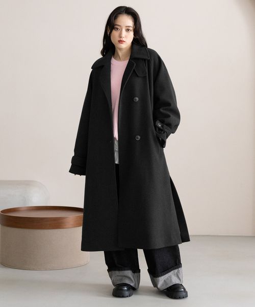 【WOMENS】<WOOLLYTEC/ウーリーテック>2WAYスタンドカラーロングコート