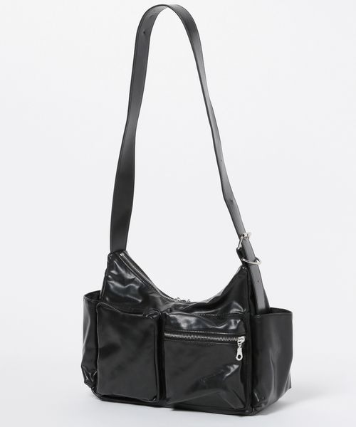 シンセティックレザー/マルチポケットショルダーバッグ