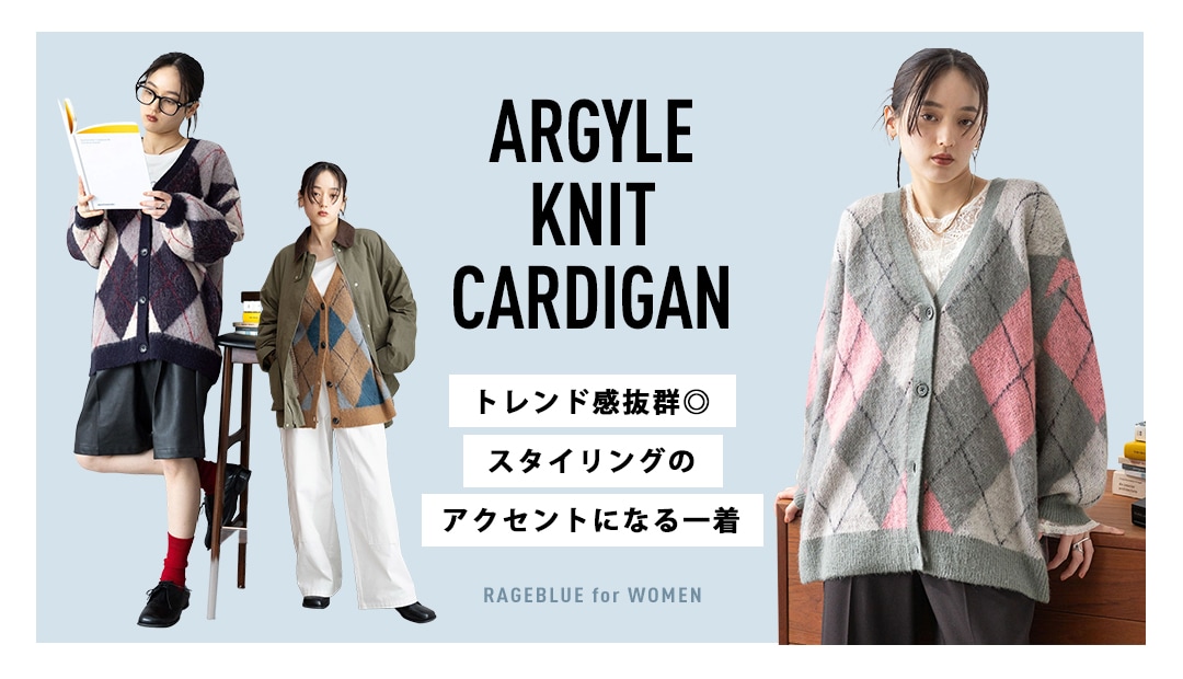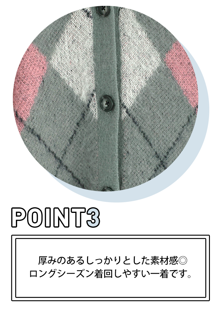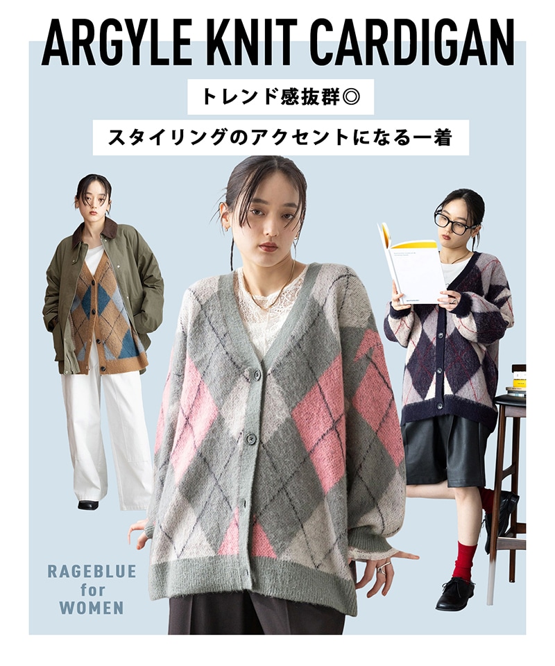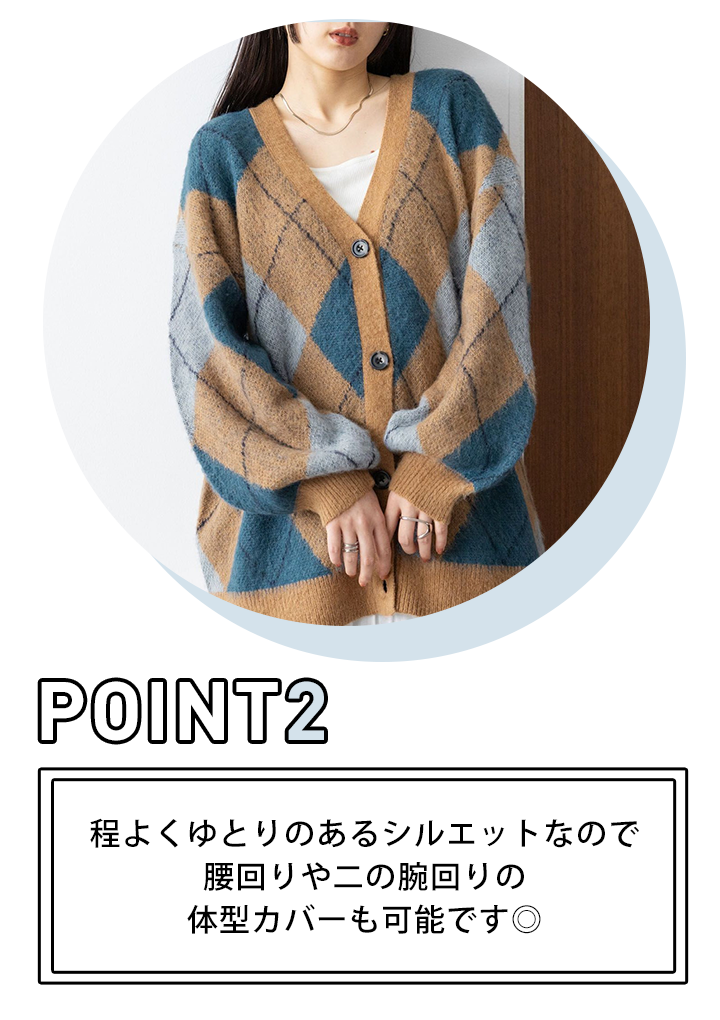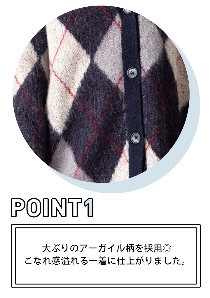 【WOMENS】モヘヤブレンド/アーガイルニットカーディガン