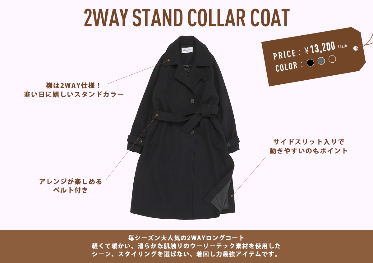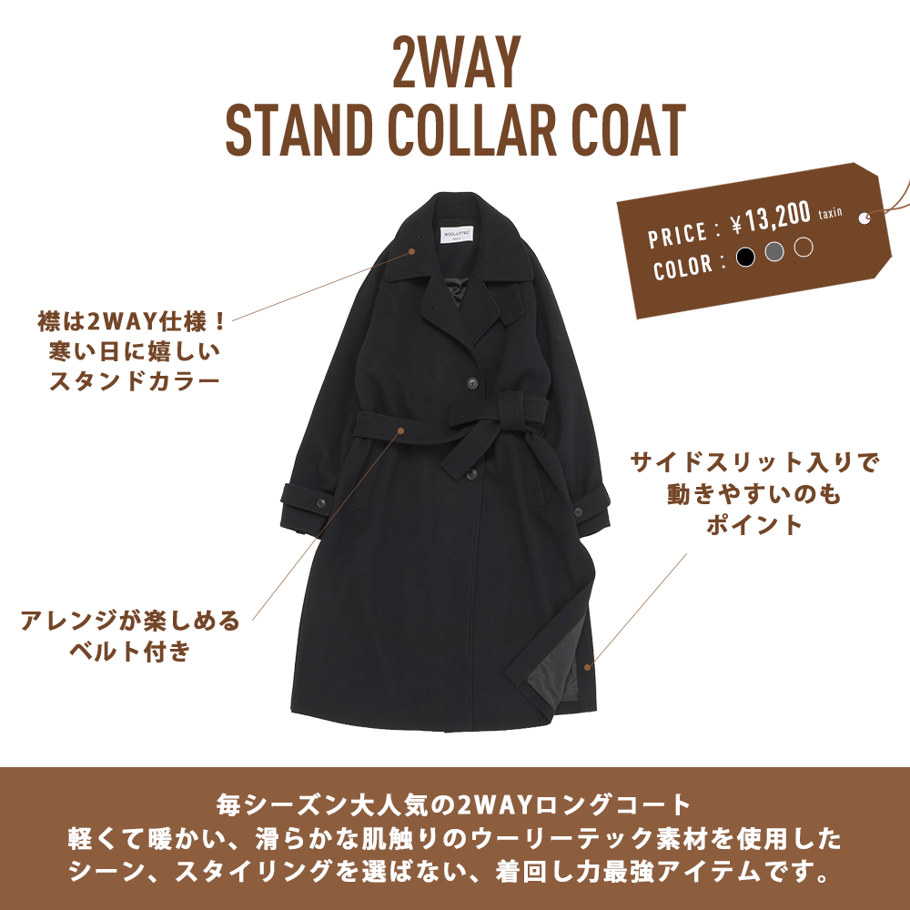 【WOMENS】<WOOLLYTEC/ウーリーテック>2WAYスタンドカラーロングコート