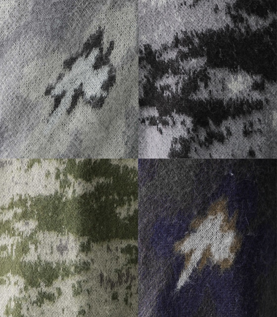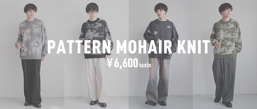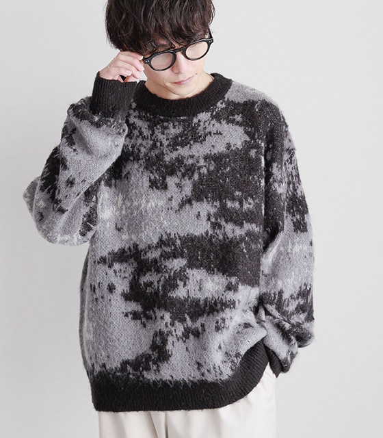 前面に施した総柄が目を引く一枚で着てサマになるモヘアニット!