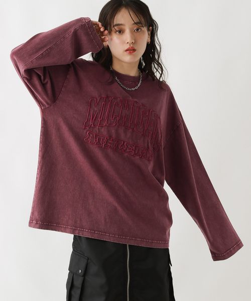 【WOMENS】カレッジロゴピグメントルーズロングTシャツ