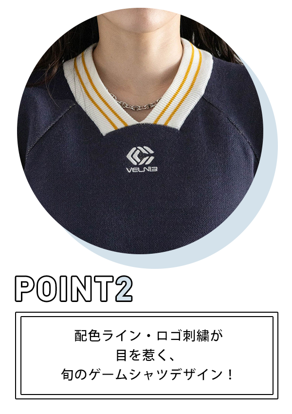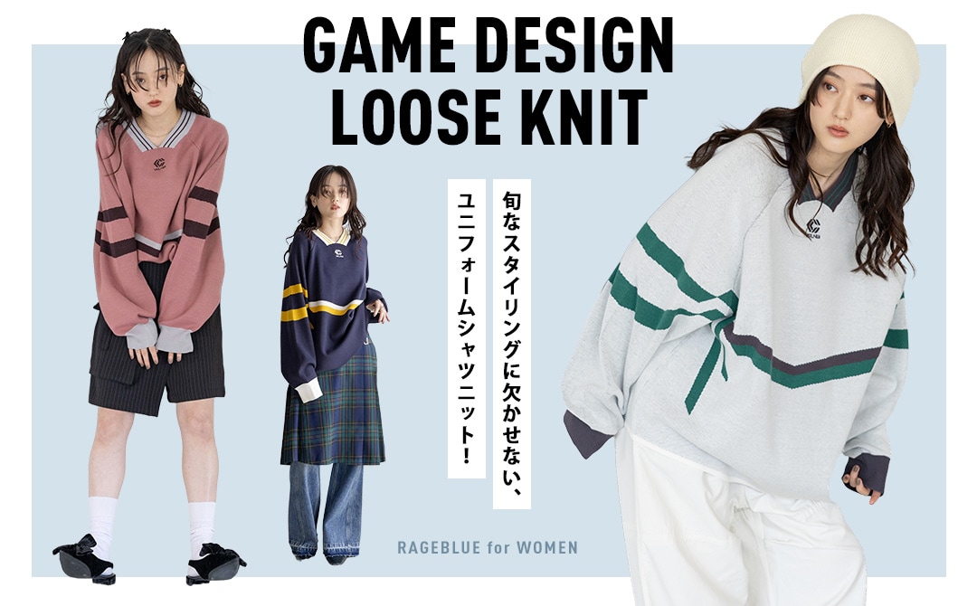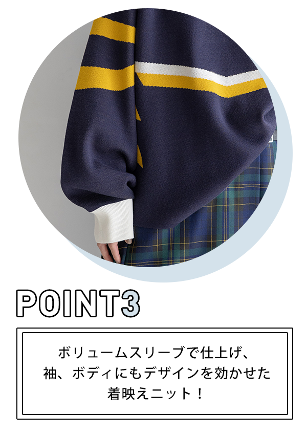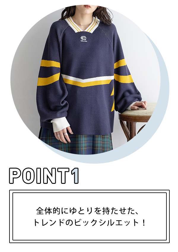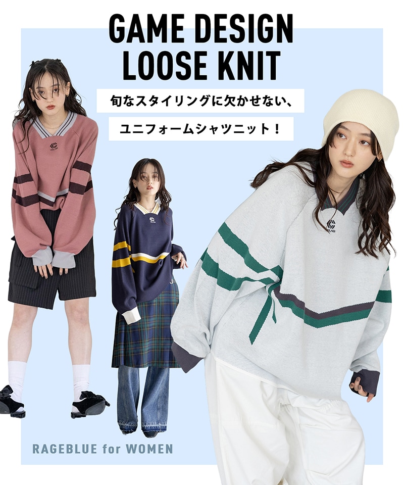 【WOMENS】配色ラインゲームシャツルーズニット